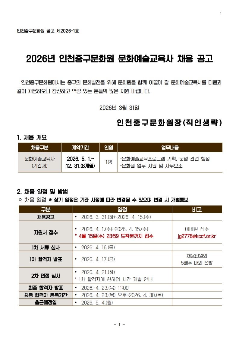 [채용공고문]2026 인천중구문화원 문화예술교육사 채용공고_1